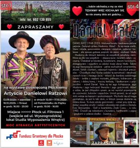 w imieniu organizatora zapraszamy na wystawę, która jest realizacją Projektu „Popularyzacja twórczości lokalnego płockiego artysty Daniela Ratza” i realizowana jest w ramach VII edycji konkursu grantowego dla osób indywidualnych i grup nieformalnych Fundacji „Fundusz Grantowy dla Płocka”.