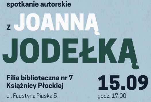 15 września, godz. 17.00 – Dyskusyjny Klub Książki „Siódemka” zaprasza wszystkich na otwarte spotkanie autorskie z Joanną Jodełką, dofinansowane ze środków Instytutu Książki pochodzących z dotacji celowej Ministra Kultury i Dziedzictwa